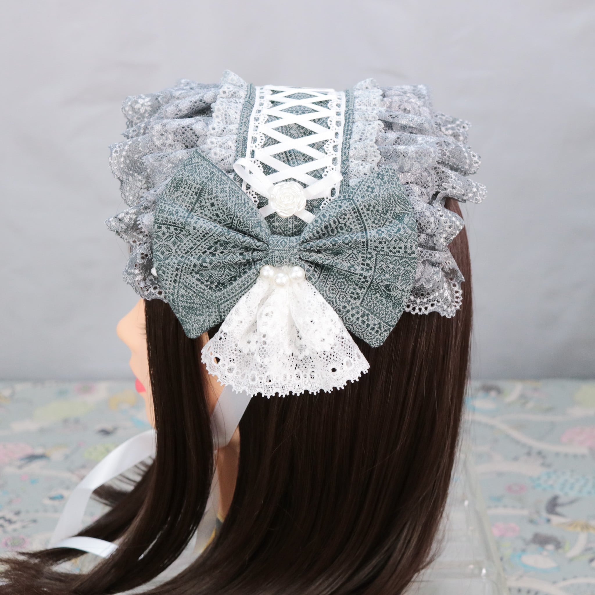 グレーホワイト ヘッドドレス 編上 ヘッドドレス ロリータ ロリィタ 成人式 卒業式