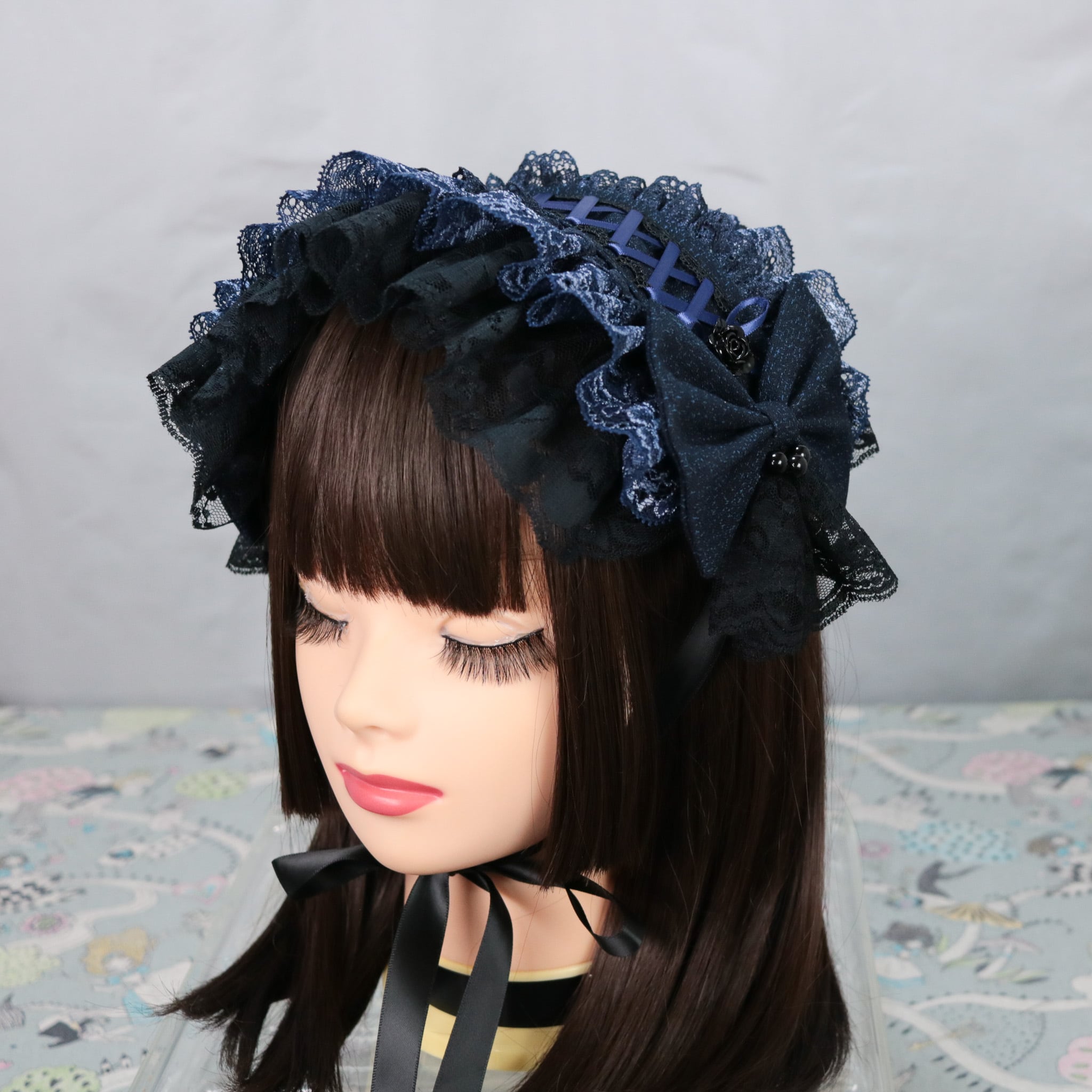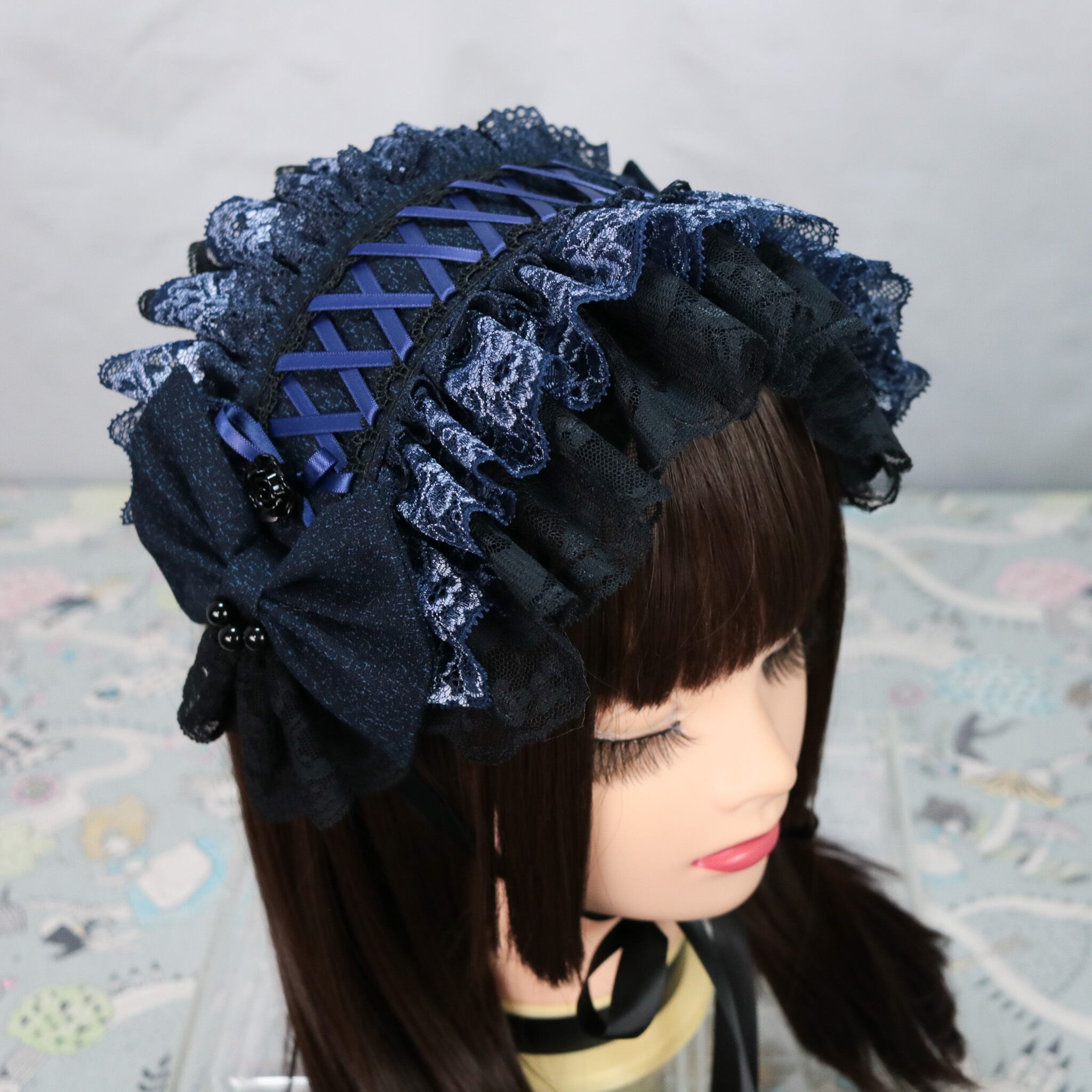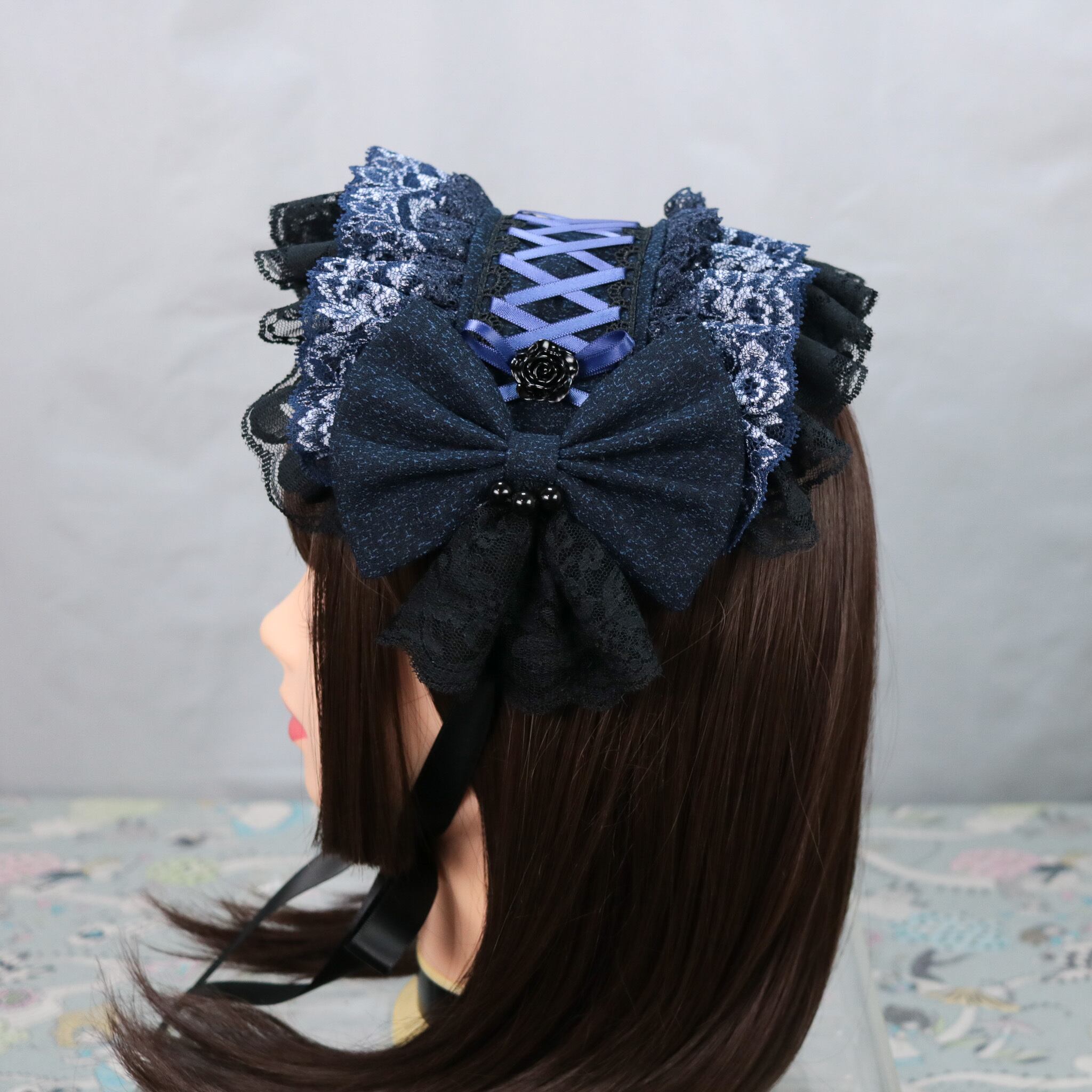 青徒×ブラックネイビー ヘッドドレス ロリータ ゴスロリ 和ロリ 成人式 卒業式
