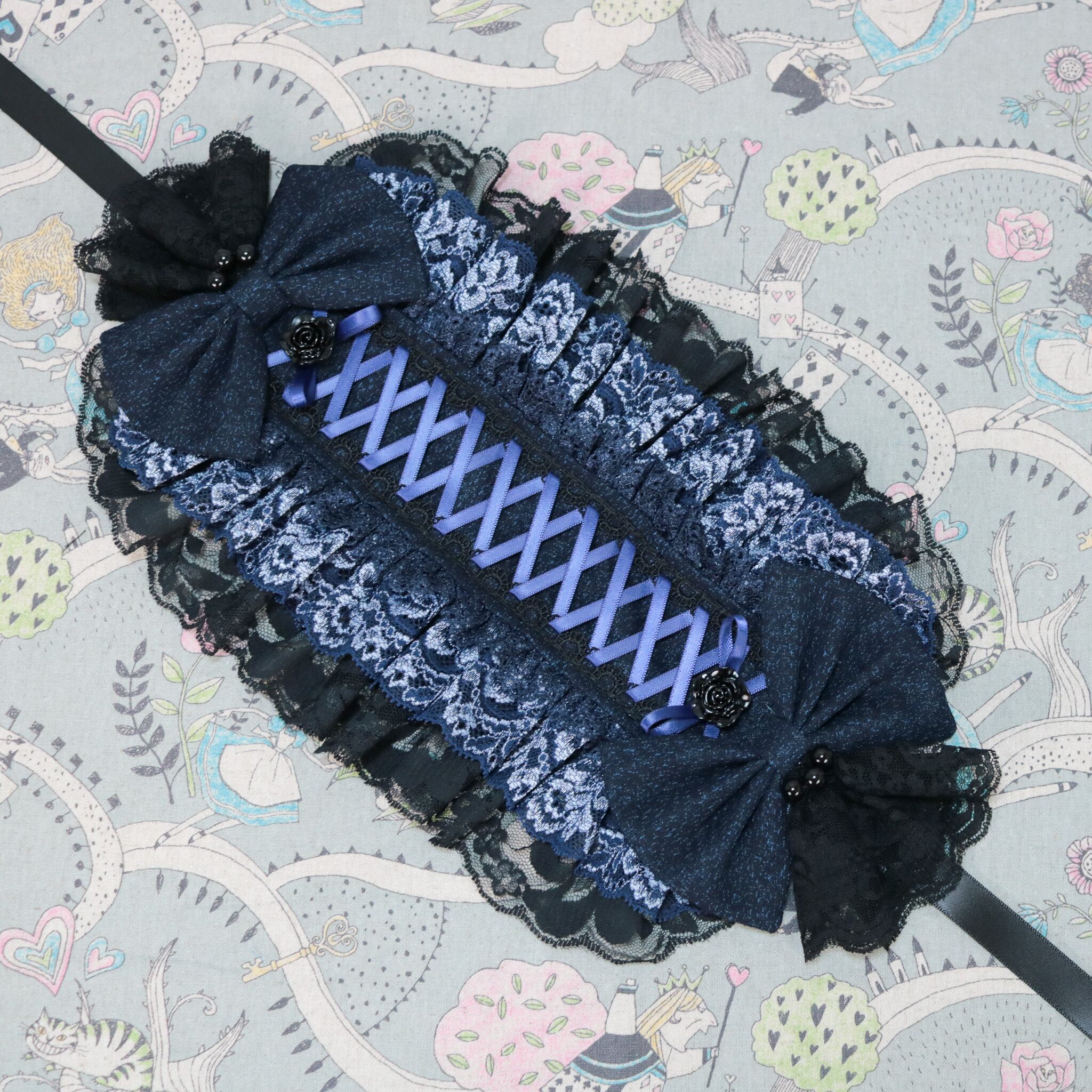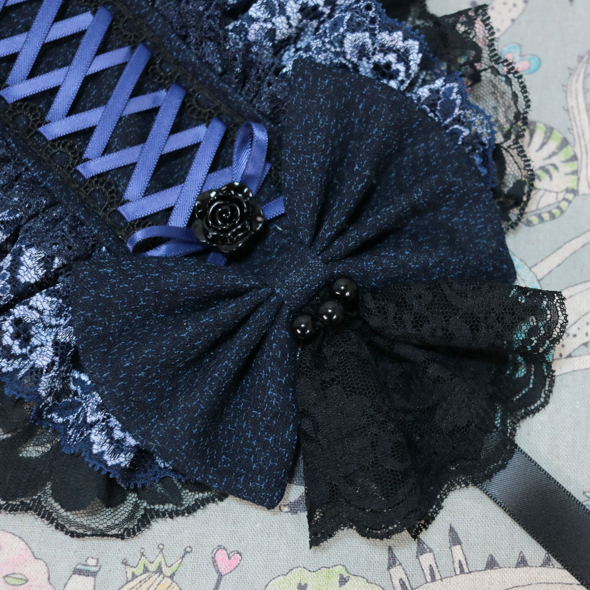 ブラック、ネイビーのレースと編上でゴスロリに寄せております。