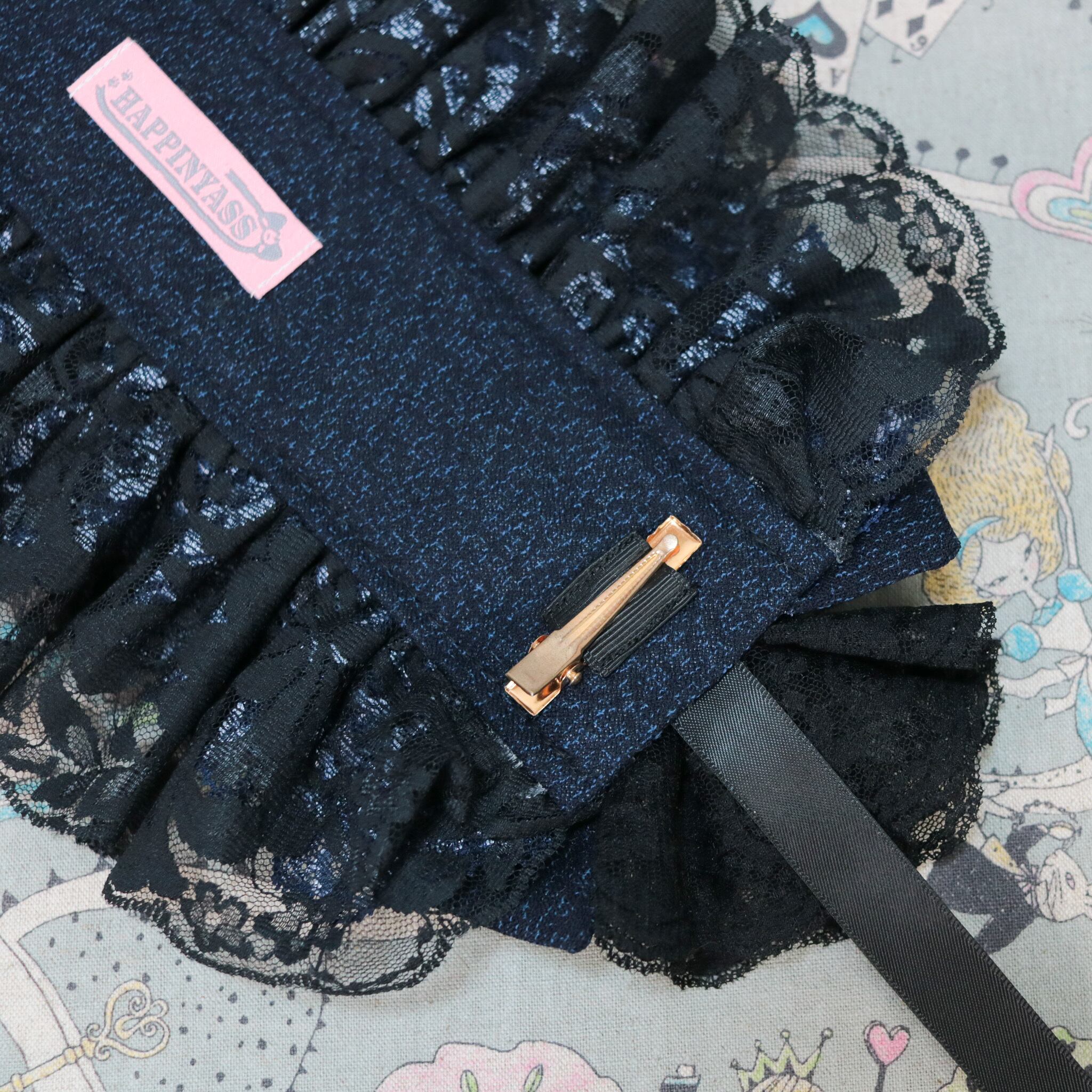 着物 リメイク 和風 和服 和装 ロリータ ロリィタ 洋服 袴 ヘッドドレス ボンネット ハーフボンネット 帽子 和洋折衷 一点物 リボン レース フリル 和柄 アクセサリー 和ロリ 和ゴス クラロリ 創作 撮影 日本 浴衣 ゆめかわ 地雷 成人式 卒業式 入学式 式典 振袖 ライブ ライバー ユーチューバー イベント アイドル コンサート コンカフェ 豪華 お茶会 lolita kimono 黒 ブラック ネイビー 紺 Happinyass