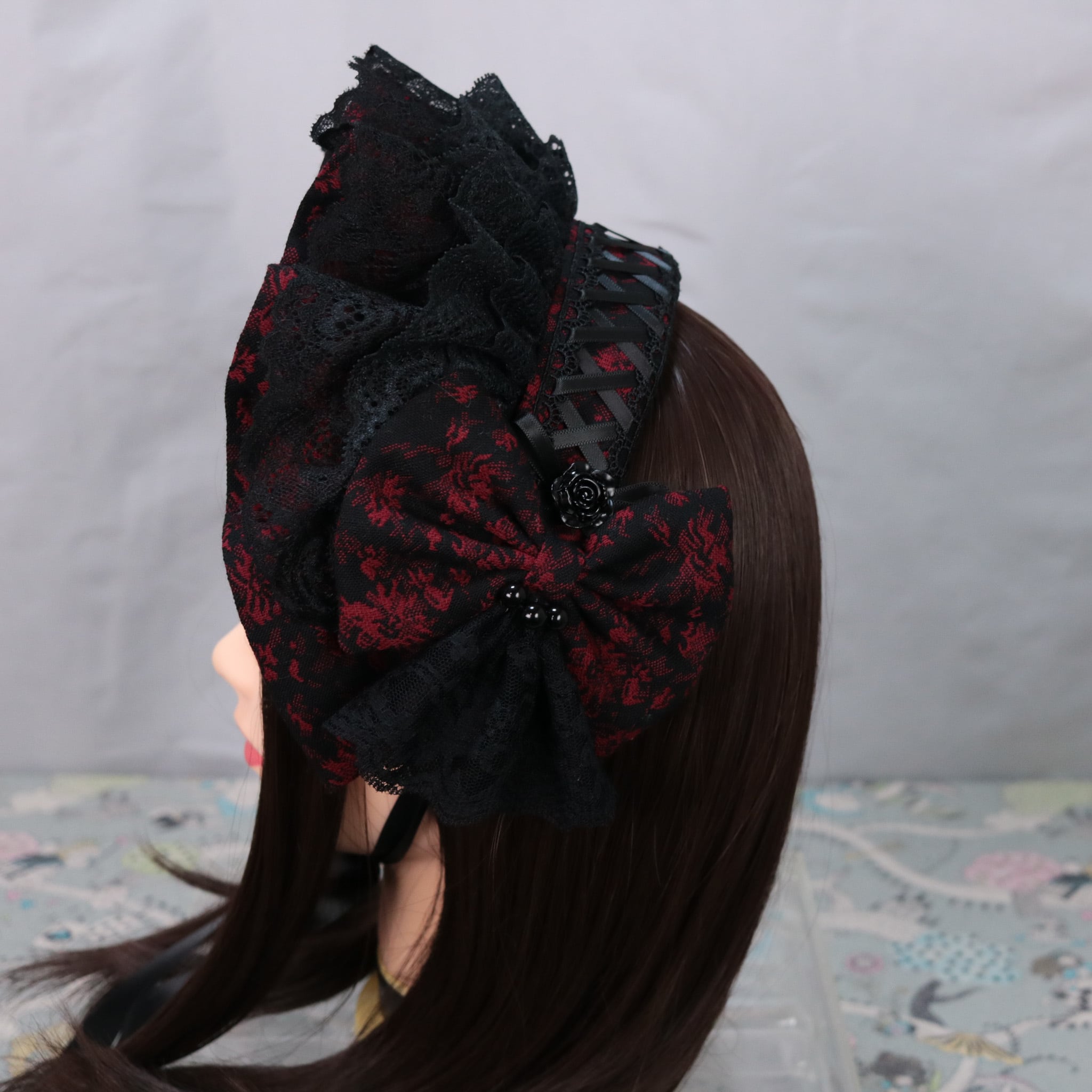 黒紅 ボリュームハーフボンネット インナーレース ロリータ ゴスロリ ゴシック 和ゴス 和ロリ
