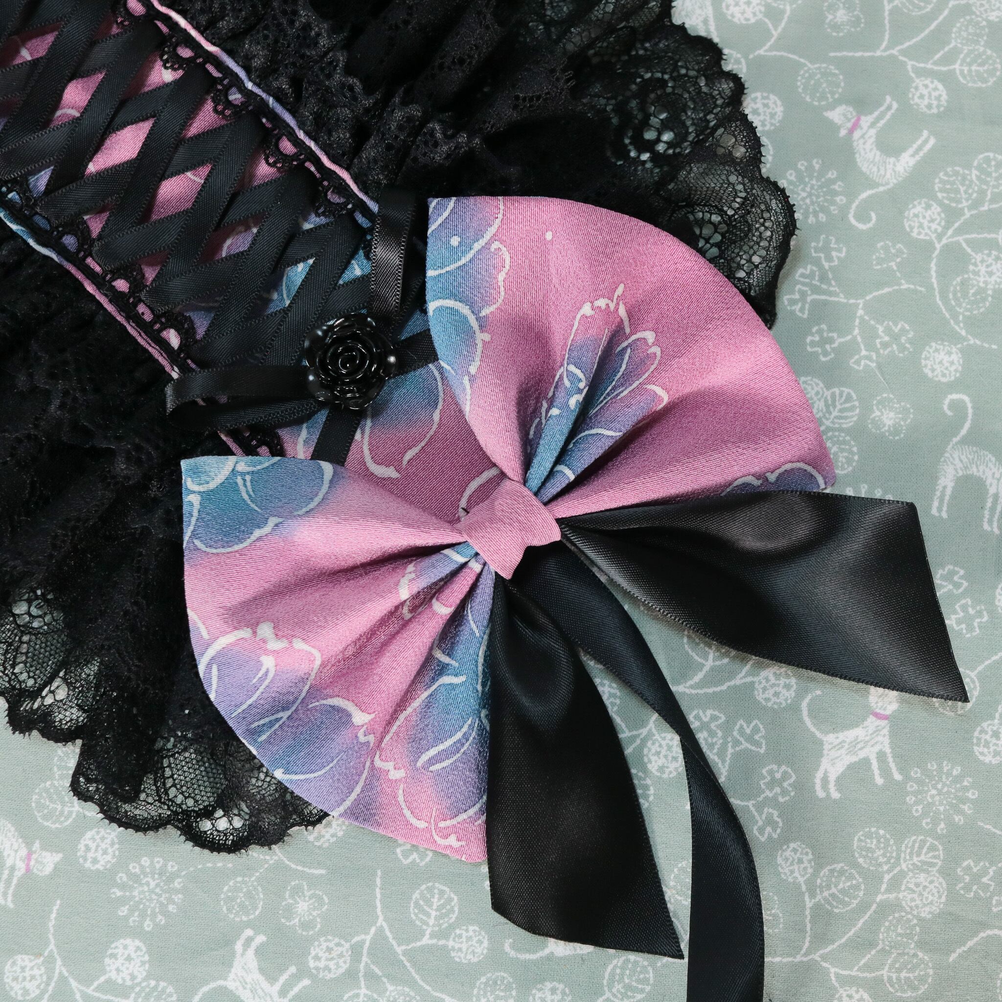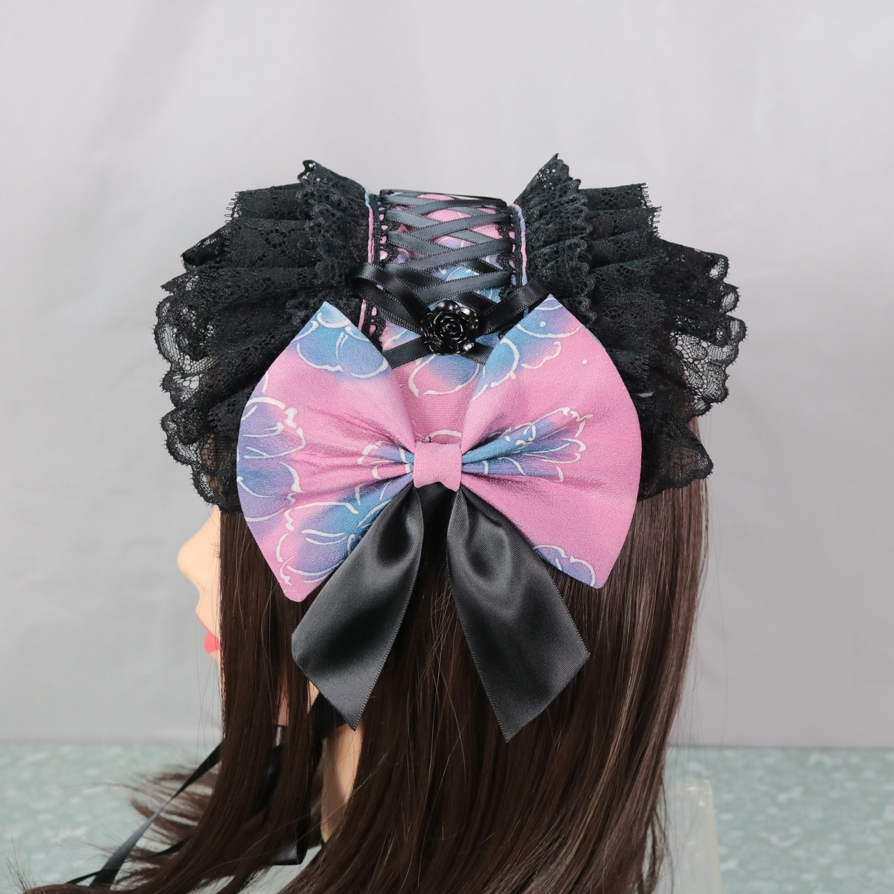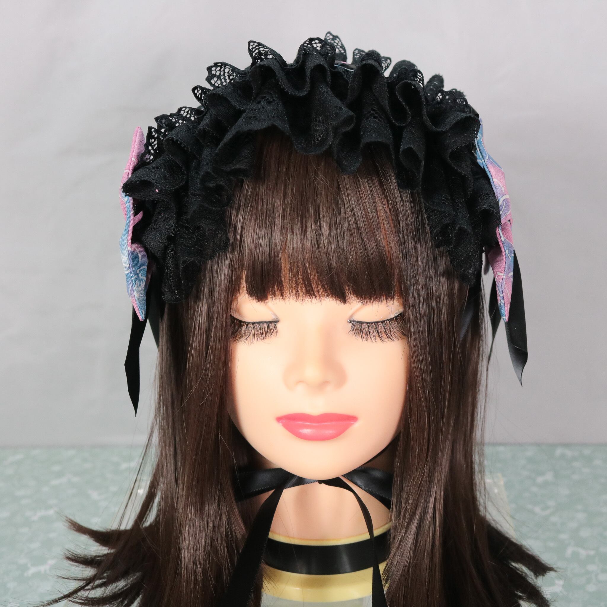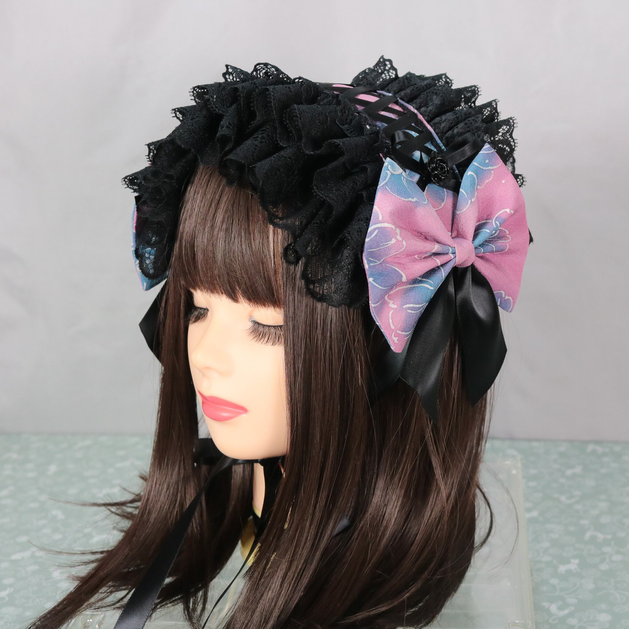 着物 リメイク 和風 和服 和装 ロリータ ロリィタ 洋服 袴 ヘッドドレス ボンネット ハーフボンネット 帽子 和洋折衷 一点物 リボン レース フリル 和柄 アクセサリー 和ロリ クラロリ 創作 撮影 日本 ゆめかわ 地雷 成人式 卒業式 入学式 式典 ライブ ライバー ユーチューバー イベント アイドル コンサート コンカフェ 豪華 お茶会 lolita kimono パープル ブルー セール 特別価格 Happinyass