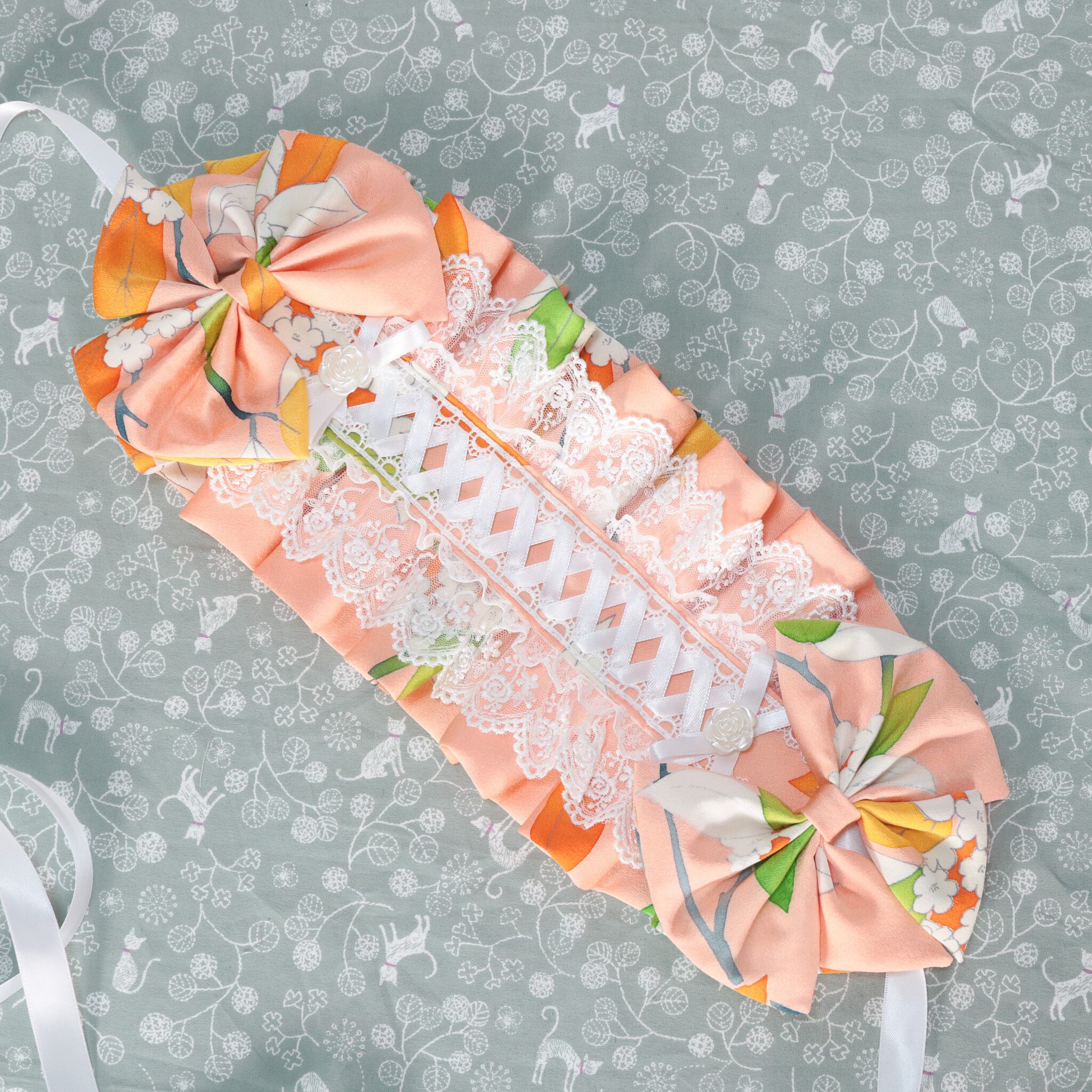着物 リメイク 着物リメイク 帯リメイク 和風 和服 和装 ロリータ ロリィタ カジュロリ 洋服 袴 ヘッドドレス ボンネット ハーフボンネット 和洋折衷 一点物 特別感 プレゼント リボン レース フリル 和柄 アクセサリー 和ロリ ゴスロリ ゴシック 創作 撮影 日本 ゆめかわ 地雷 卒業式 入学式 式典 ライブ ライバー ユーチューバー lolita kimono Japan オレンジ